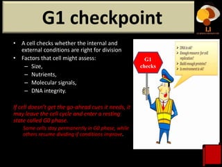 Mitosis and Cancer PowerPoint Presentation free download Biology Diagrams These checkpoints occur near the end of G 1, at the G 2 /M transition, and during metaphase. Figure 10.3B. 1 10.3 B. 1: Internal Checkpoints During the Cell Cycle: The cell cycle is controlled at three checkpoints. The integrity of the DNA is assessed at the G1 checkpoint. Proper chromosome duplication is assessed at the G2 checkpoint.